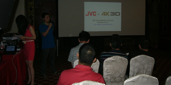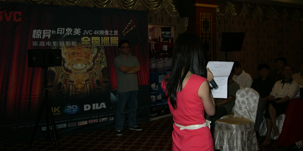 本次漳州站主要内容 为“JVC D-ILA 2.35:1 3D Movie体验、JVC D-ILA电影投影机 4K/2K画质对抗 、JVC THX 3D& ISF校正示范、JVC D-ILA逼真临场感再现”。活动中动态展示了JVC DLA-XC988RB手工限量版营造出美仑美焕的家庭剧院效果。详细介绍了JVC的特色:与日本NHK 联合开发的E-SHIFT 的4K(3840*2160)。 3D 状态下主动快门式眼镜各品牌的区别,突出JVC的逐面驱动与其他品牌的顺次驱动的区别,从而提高3D画面的亮度。