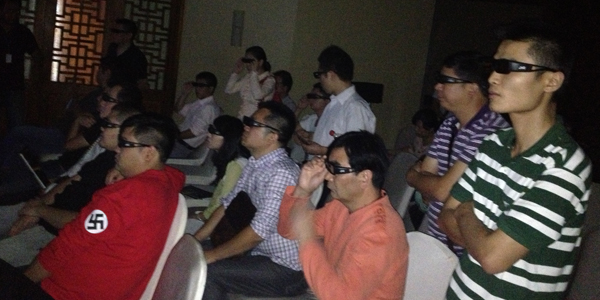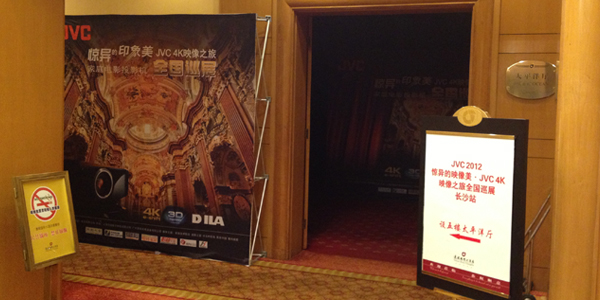 2012年9月22日举办了两场客户体验会,通过DLA-XC988RB为现场嘉宾演示了JVC原厂的4K DEMO演示片,画面模式切换在原厂设定的自然模式。演示过程中通过遥控切换4K/2K不同的解像投影,现场嘉宾在JVC销售工程师的指引下,通过观察体会到了4K与传统FULL HD 1920*1080的区别,像素晶格已经无法用肉眼察觉,图像轮廓更加细腻清晰。 活动现场对投影机各种技术做了详尽介绍,现场嘉宾与JVC销售工程师及时全面解答相关JVC的专业问题。